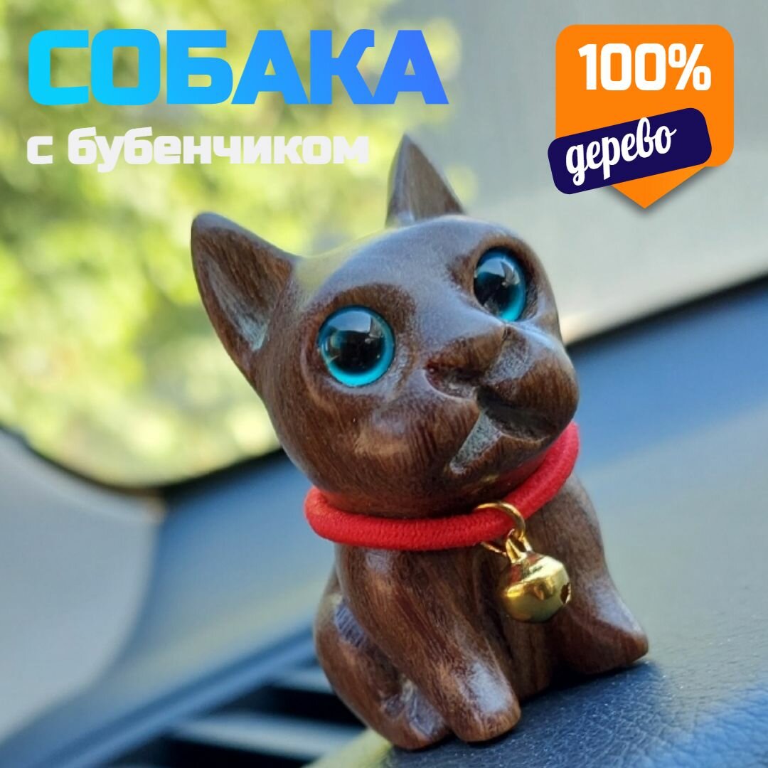 Купить Фигурка собака с бубенчиком из сандалового дерева голубые глаза