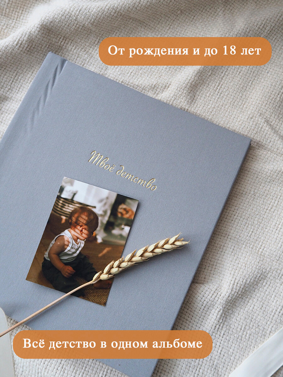 Купить Первый альбом малыша от рождения до 18 лет с ежегодной анкетой "Твое детство". 21х23 см. Для себя и в подарок.