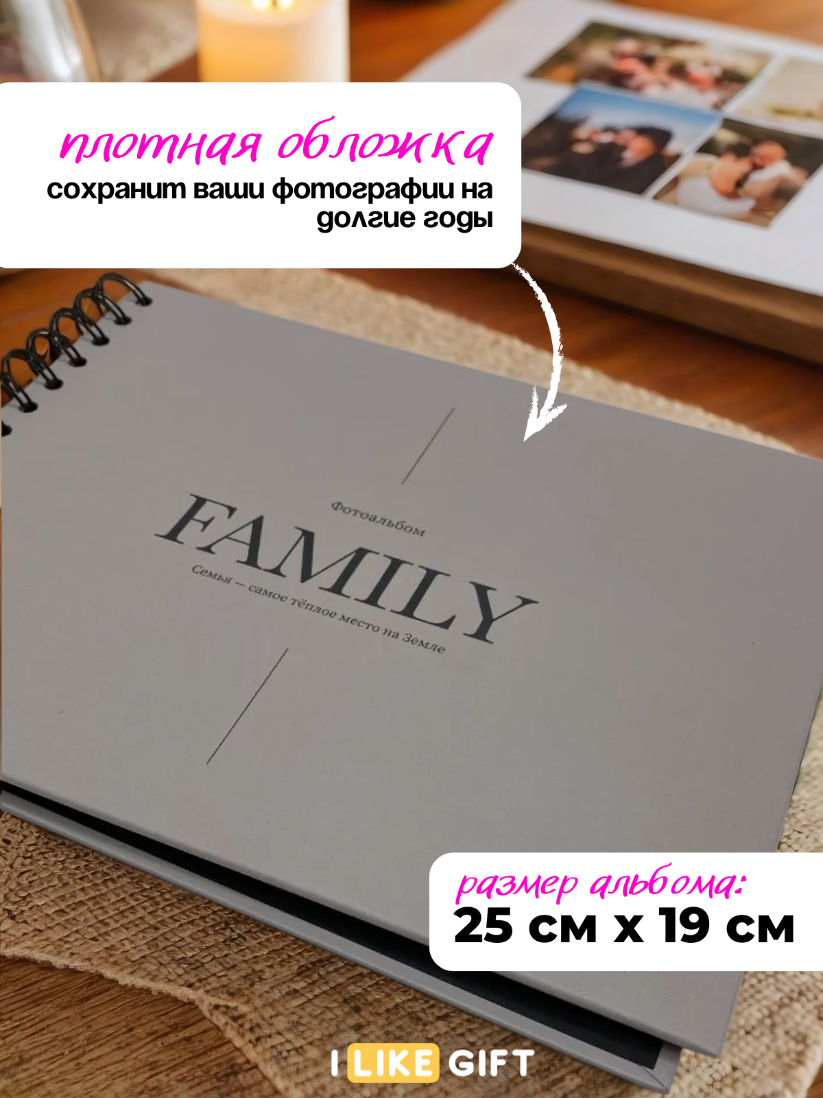 Фотоальбом семейный на пружине "Семья", 25х19 см, 20 черных листов