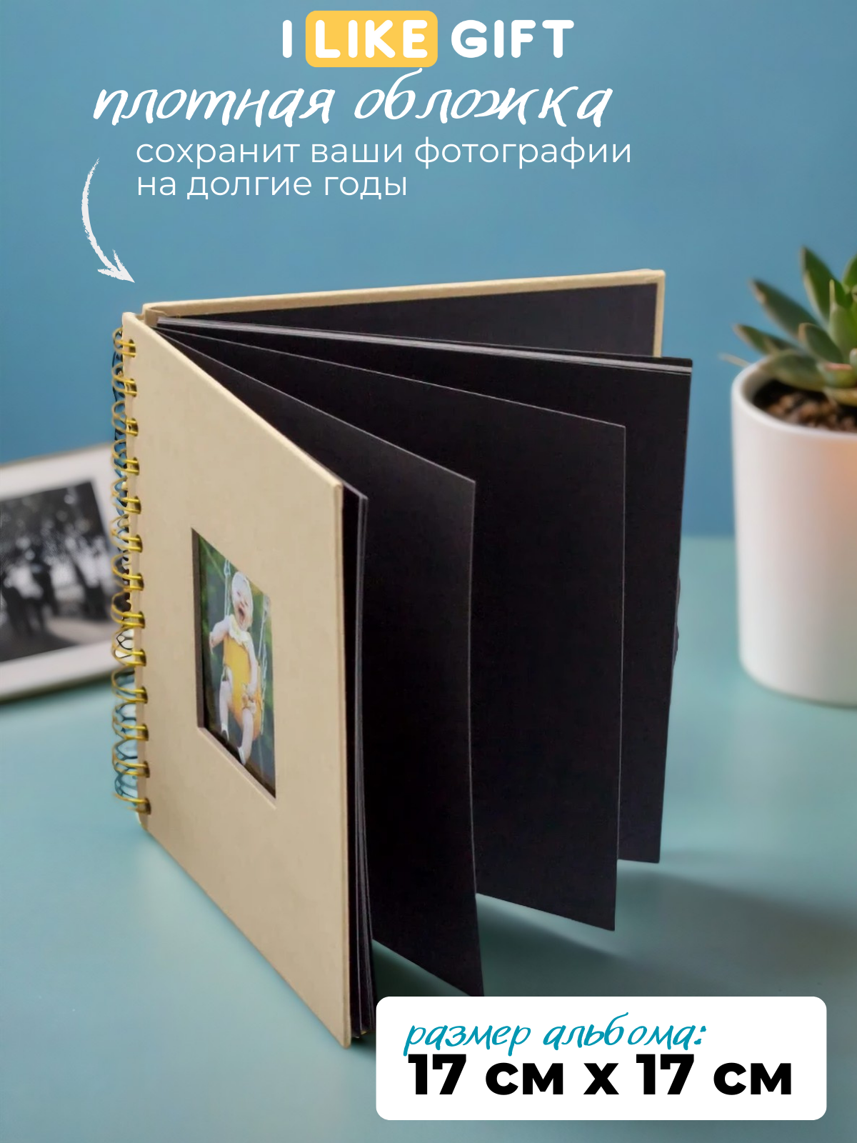Купить Фотоальбом семейный на пружине "Крафтовый", 17х17 см, 20 черных листов
