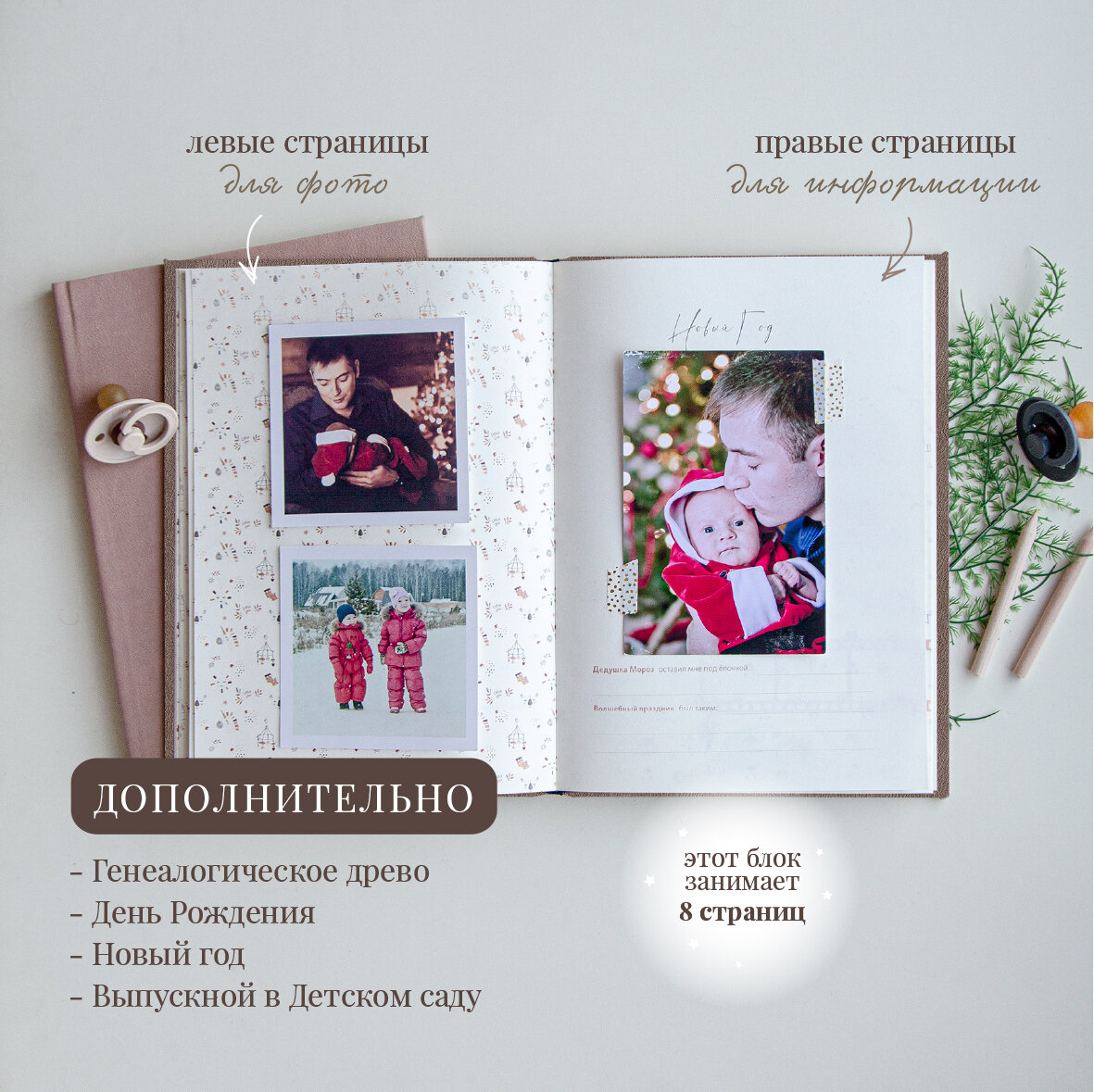 Альбом новорожденного "Мокка Мусс" / экокожа, бумага айвори / 76 фото интересное:
