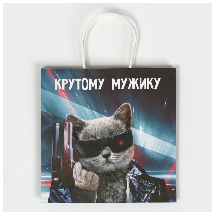 Купить Пакет подарочный крафтовый «Мужику», 22 х 22 х 11 см, для упаковки подарка