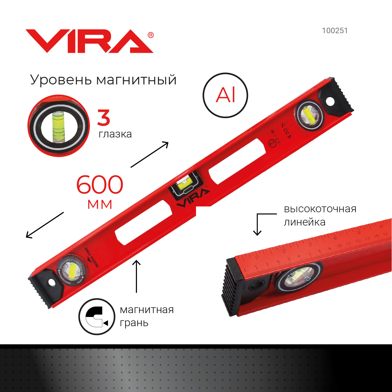 Уровень 600мм Vira магнитный с поворотным глазком интересное: