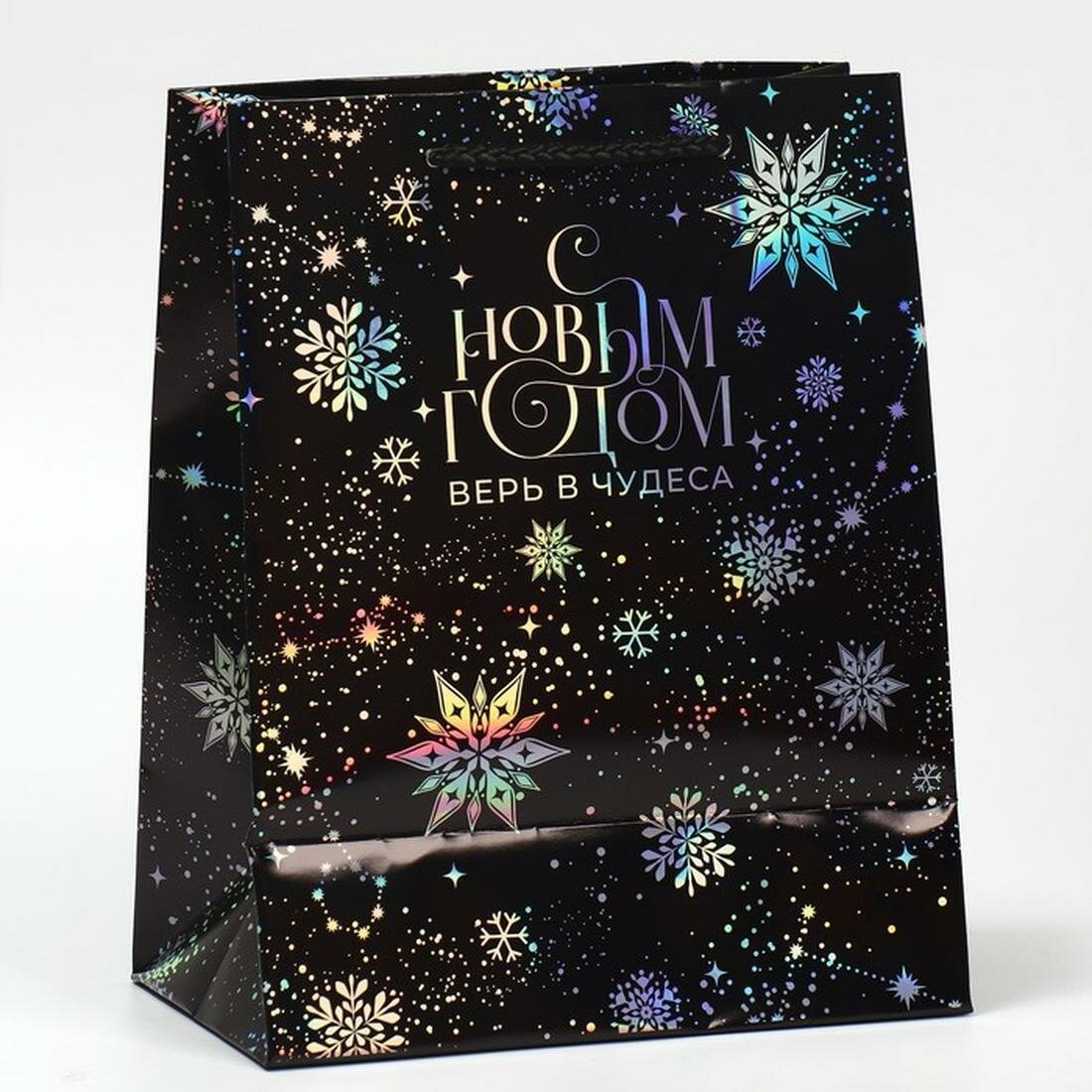 Купить Дарите Счастье Пакет голографический "Танец снежинок", 18 х 23 х 10 см