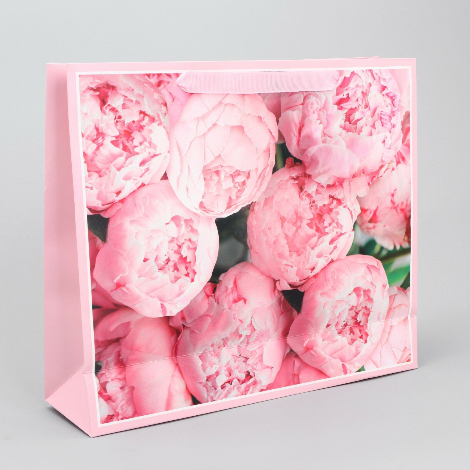 Пакет подарочный крафтовый с ручками Арт Узор с принтом 'Пионы', 100 г/м2, 25*22*12 см
