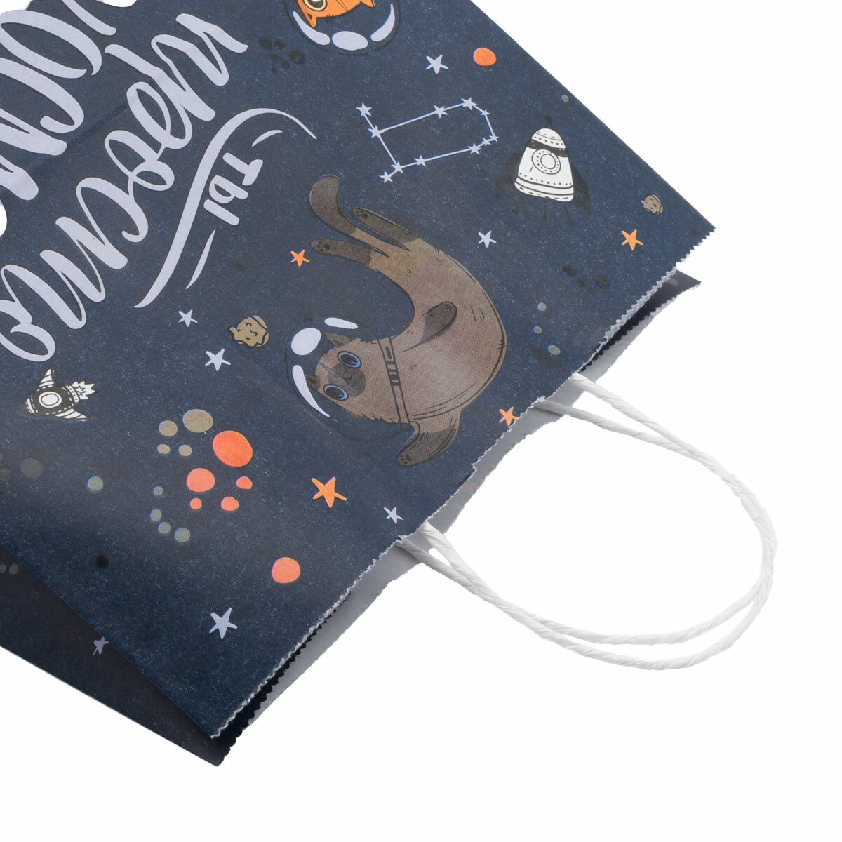 Купить Пакет подарочный крафтовый с ручками, принт 'Ты просто космос' Арт Узор, тёмно-синий, 100 г/м2, 25*22*12 см