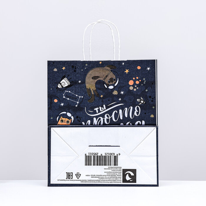 СохранитьПакет подарочный крафтовый с ручками, принт 'Ты просто космос' Арт Узор, тёмно-синий, 100 г/м2, 25*22*12 см интересное: