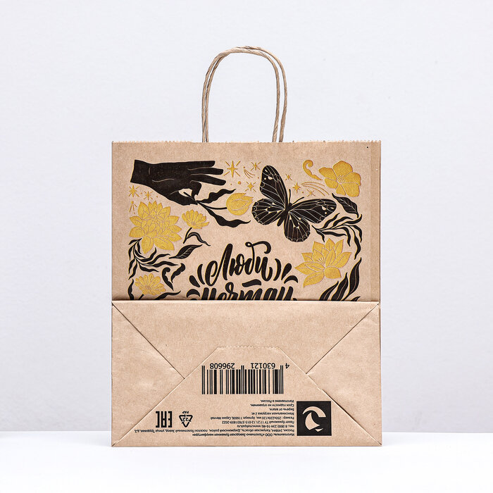 Пакет подарочный крафтовый с ручками Арт Узор 'Цвети от счастья' 22*12*27 см (9924482)