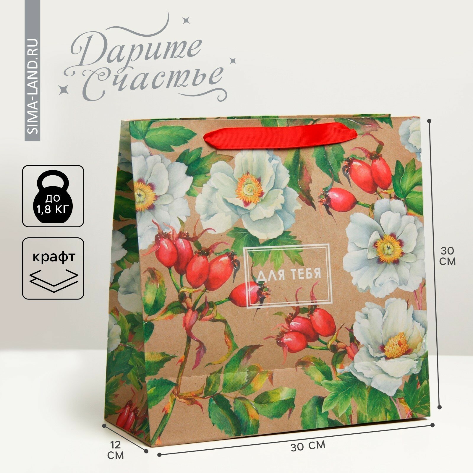 Пакет подарочный крафтовый квадратный «For you», 30 × 30 × 12 см