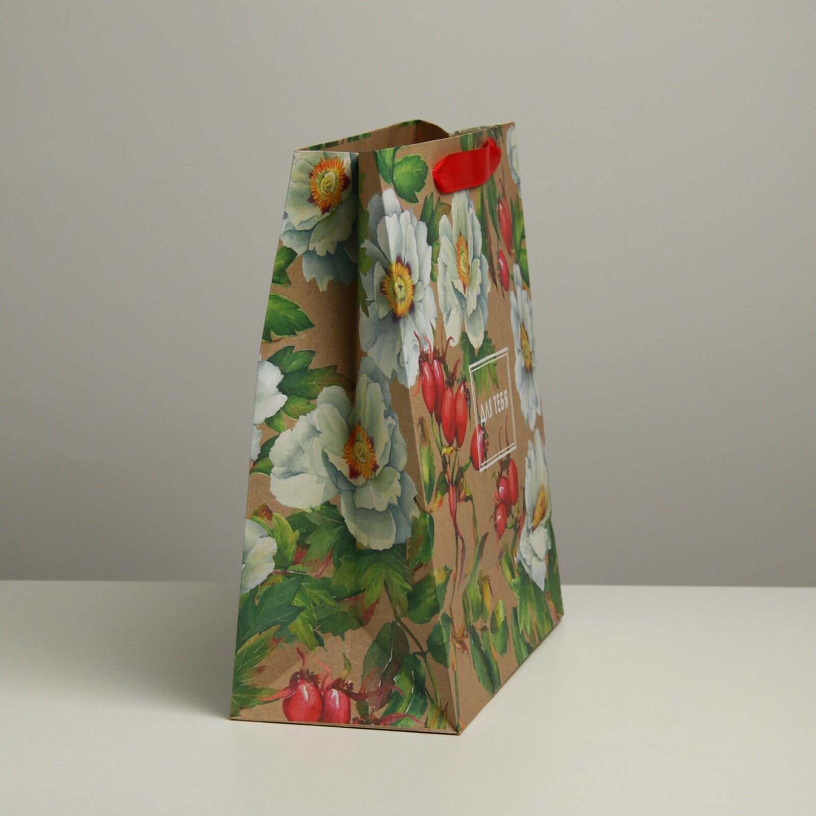 Пакет подарочный крафтовый с ручками Арт Узор 'Цветы' 22*12*27 см (9924485)