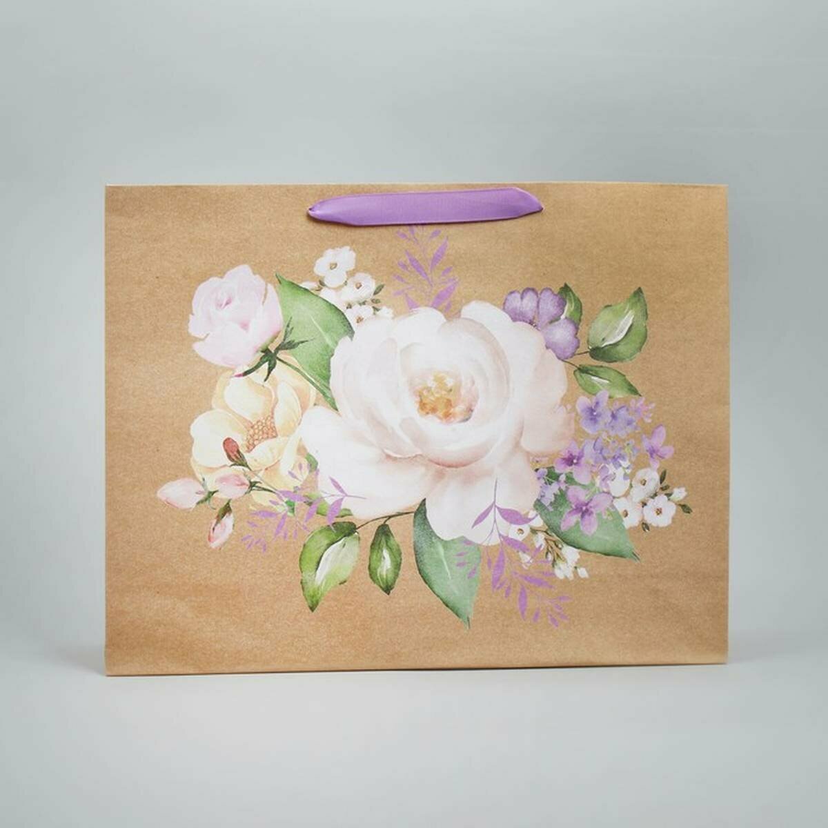 Пакет подарочный крафтовый с ручками Арт Узор 'Цветы' 22*12*27 см (9924485)