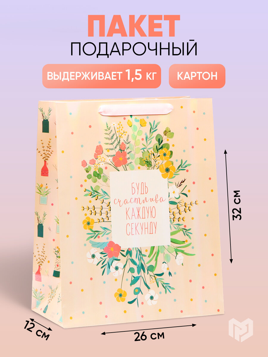Дарите Счастье Пакет подарочный "Букет для тебя", MS 18 × 23 × 8 см
