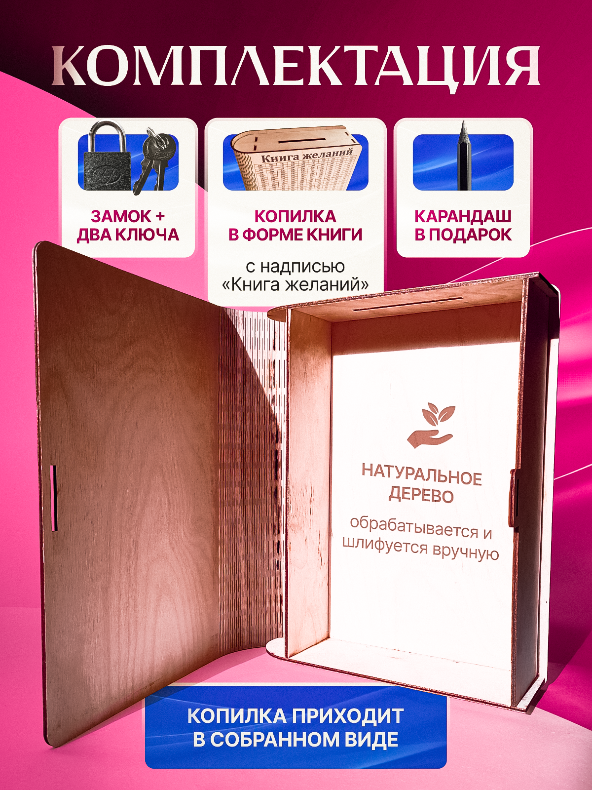 | Дополнительная информация | в форме книги, очень вместительная, предназначена для бумажных купюр |