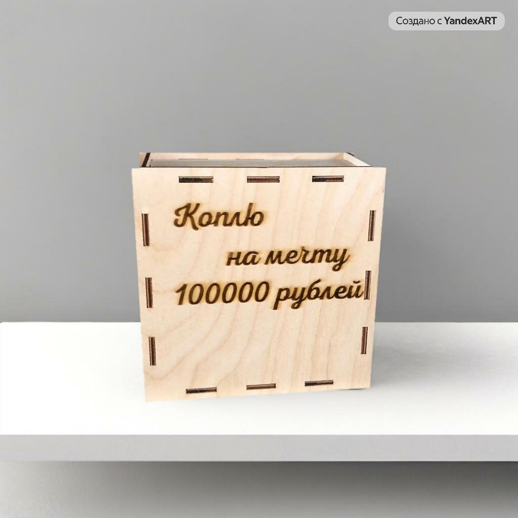 Деревянная Копилка Сувенир "Коплю на мечту 100000 рублей"