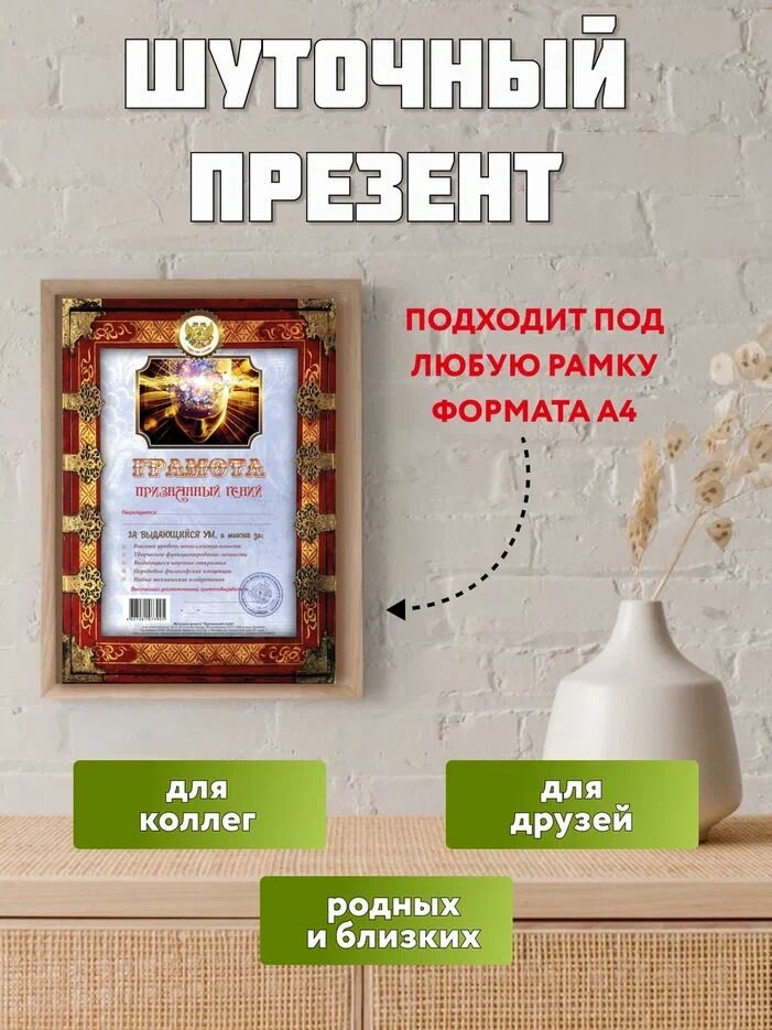 Грамота "Признанный гений"