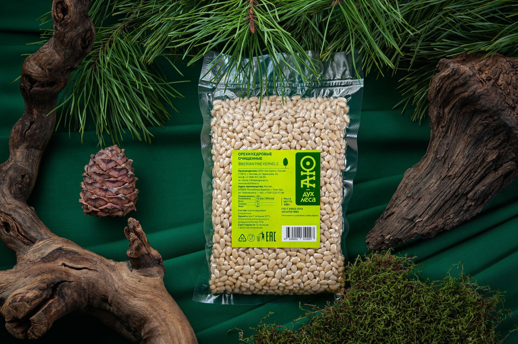 Кедровые орехи очищенные АЮ-Дух леса 300 г, вакуумная упаковка