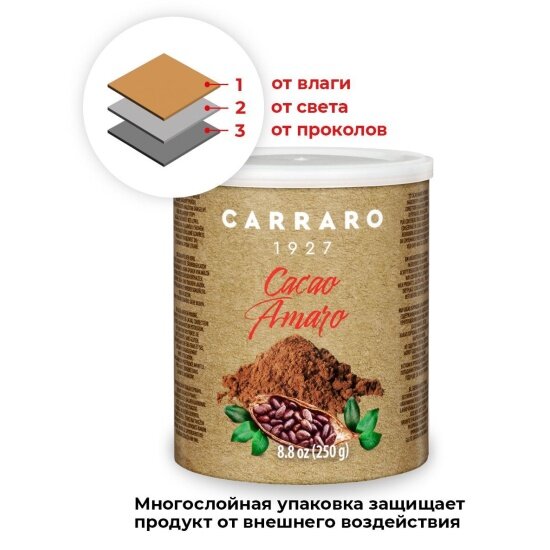 Какао-порошок Carraro Cacao Amaro 250 г TIN интересное: