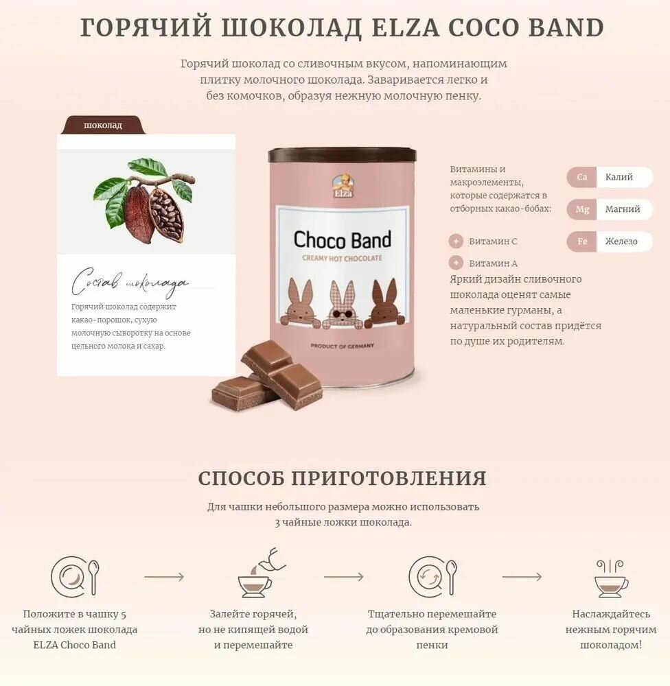 Горячий шоколад с воздушной кремовой пенкой Elza Choco Band (Германия) 250 гр. х 2 шт. интересное: