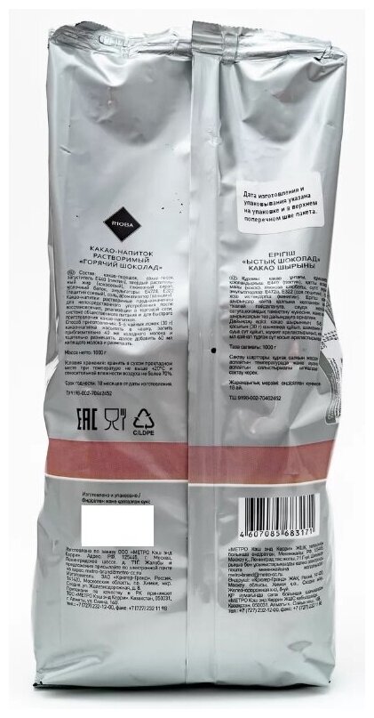 Какао-напиток растворимый RIOBA Горячий шоколад, пакет, 1 кг