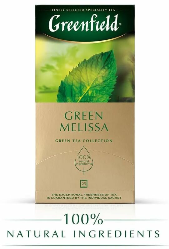 | Состав набора | Гринфилд Грин Мелисса чай зеленый с добавками пакетированный, 100 пакетиков по 1,5 г, в картонной упаковке |