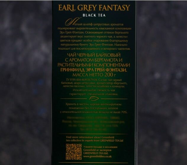 Чай листовой черный GREENFIELD Earl Grey Fantasy 600 г интересное: