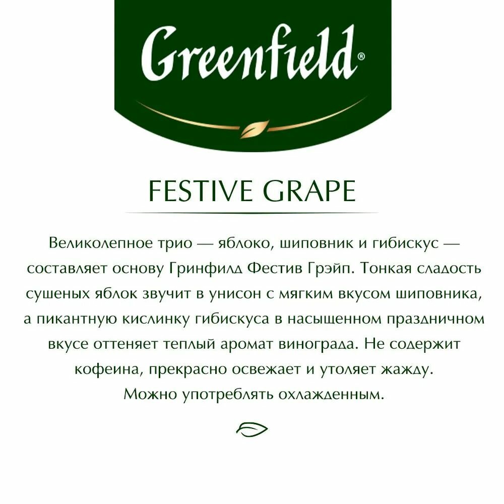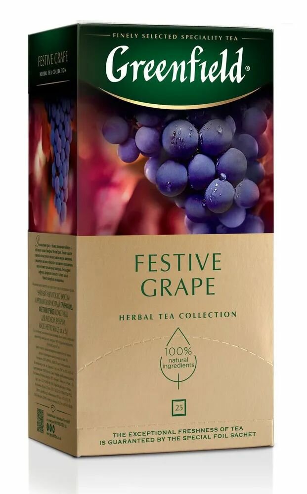 Чай в пакетиках травяной Greenfield Festive Grape(Фестив Грэйп), 25 пак. Виноград. интересное:
