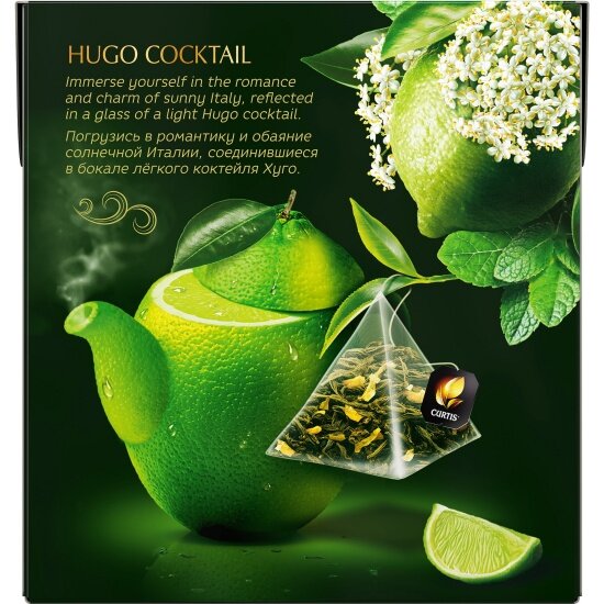 Купить Чай зеленый Curtis "Hugo Cocktail" с цветочным вкусом мятой лаймом и ароматом цветов бузины среднелистовой 20 пирамидок