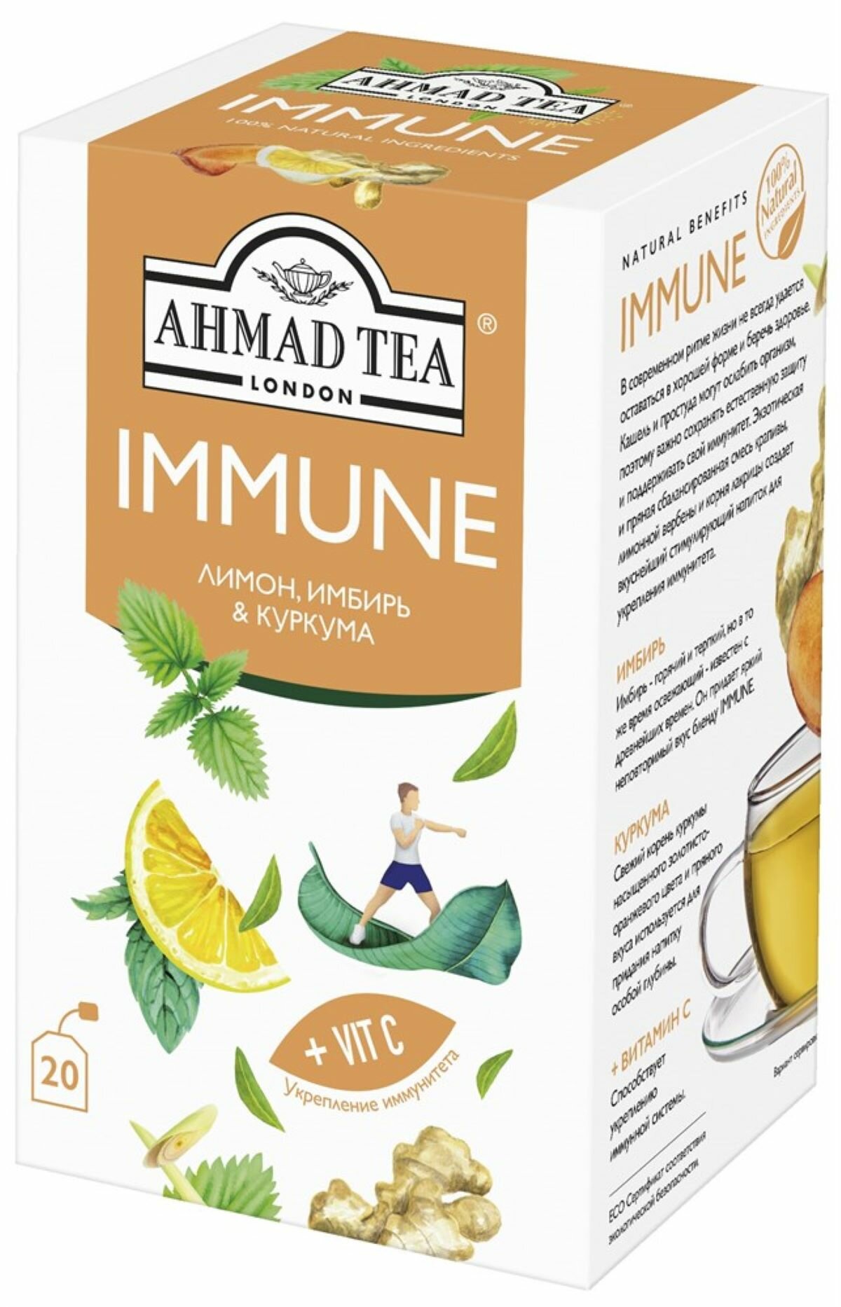 2034 Чайный напиток "Ahmad Tea", Имьюн, пакетики с ярлычками в индивидуальных конвертах, 20х1,5г