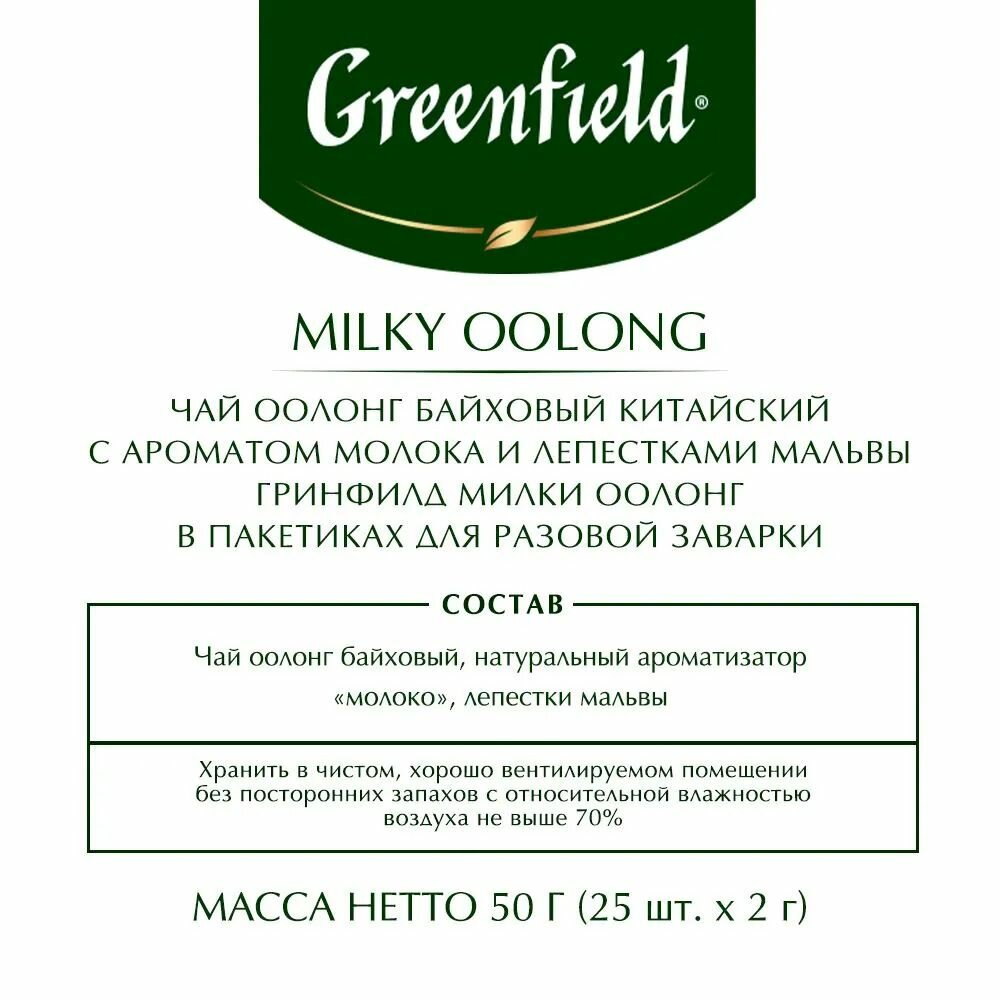 Чай в пакетиках улун Greenfield Milky Oolong (Милки Оолонг), 25 пак. интересное: