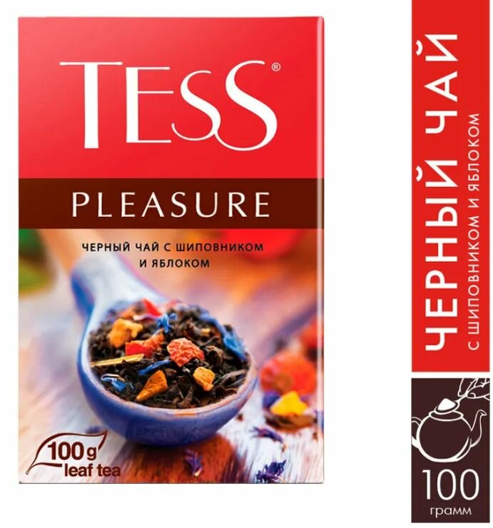 Чай черный листовой Tess Pleasure с шиповником и яблоком, 100 г