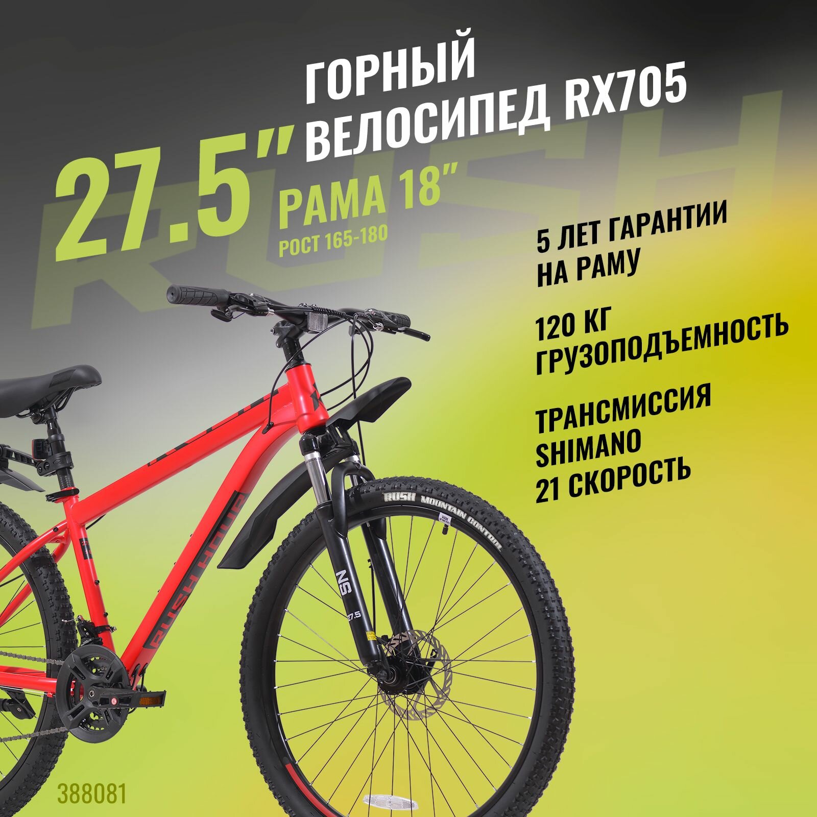Велосипед горный дисковый 27,5 RUSH HOUR RX 705 21 скорость красный рама 16" рост 150-165. скоростной подростоквый спортивный велик с амортизацией переключатель SHIMANO