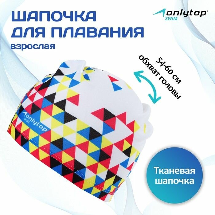 Шапочка для плавания взрослая ONLYTOP, тканевая, обхват 54-60 см