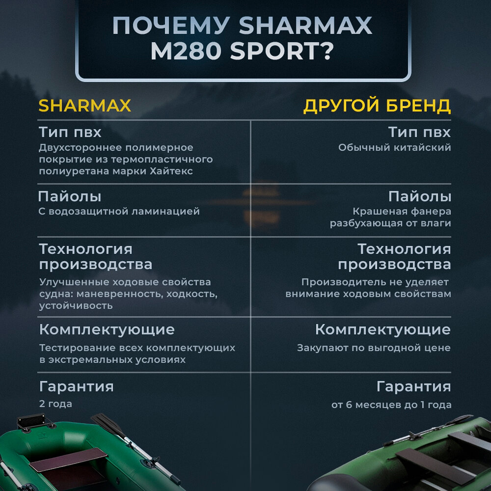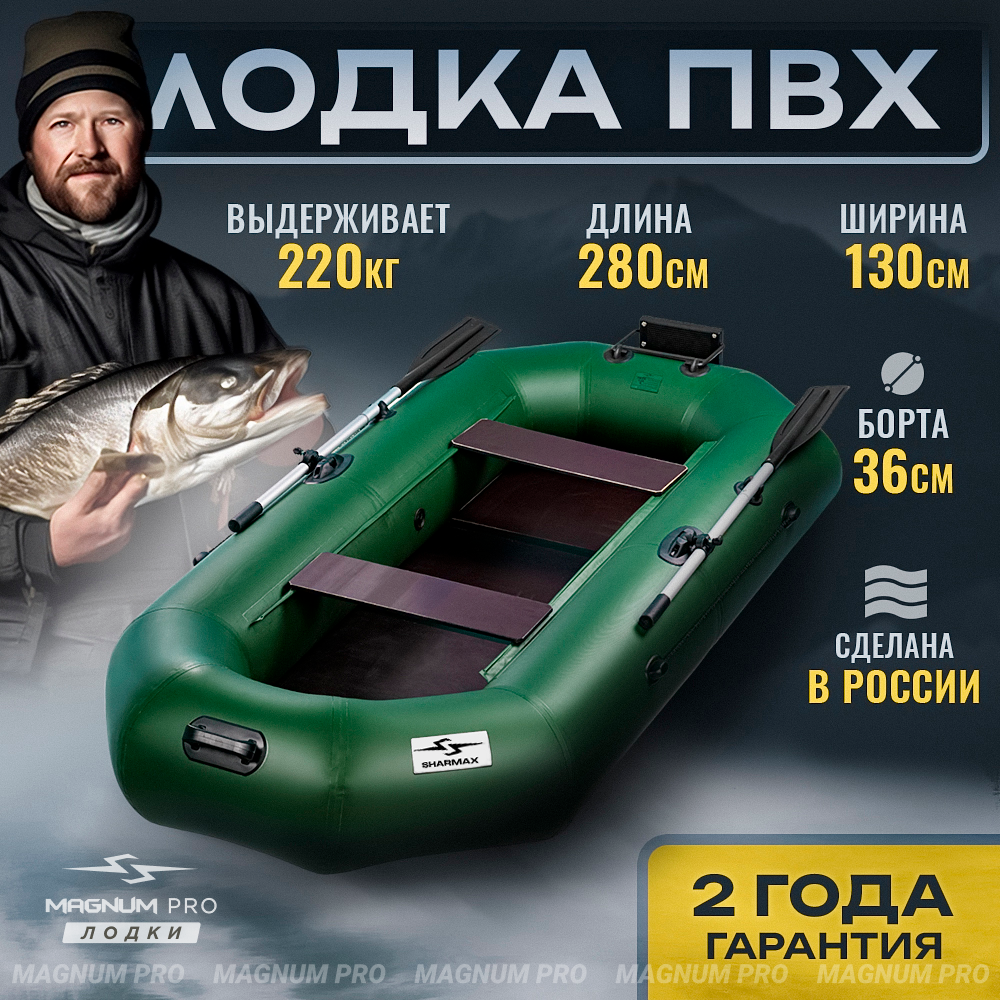 Лодка ПВХ под мотор надувная двухместная гребная для рыбалки Sharmax M280 Sport с транцем грузоподьемностью 220 кг. интересное: