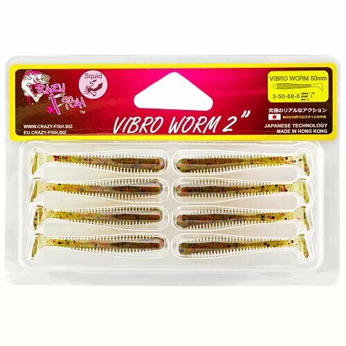 Силиконовые приманки Crazy Fish Vibro worm 2" 3-50-4-2, рыба, 8 шт.