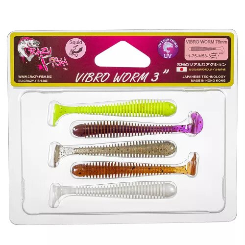 Силиконовая приманка мягкая съедобная Crazy Fish Vibro Worm 3" 75 мм 11-75-1-6 5 шт.