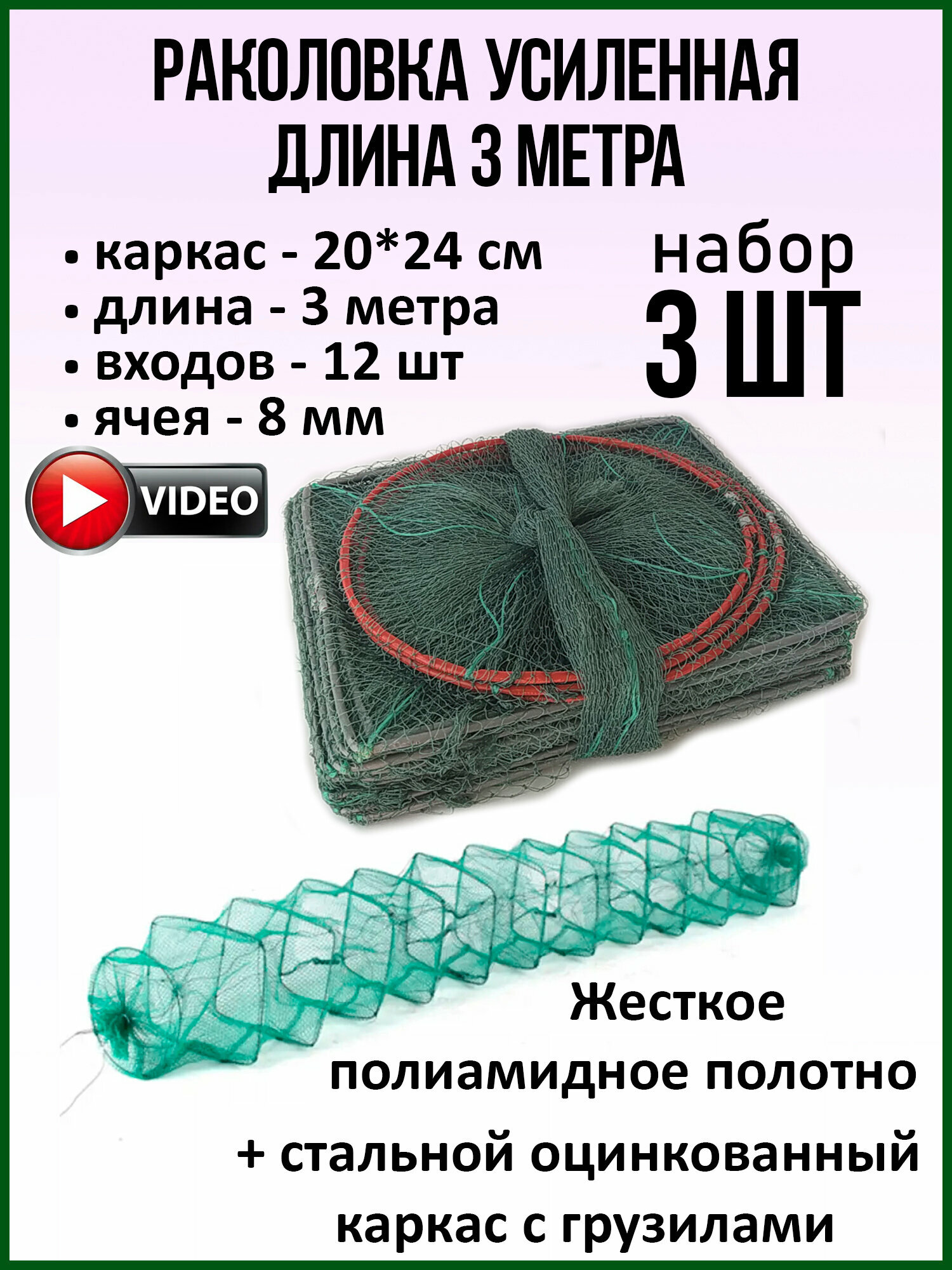 Ниже Вы можете прочитать отзывы на Раколовка "Гармошка", складная, 3 м, 20 см x 24 см, 3 шт, ознакомится с подробными характеристиками, посмотреть интересные обзоры и фотографии на Раколовка "Гармошка", складная, 3 м, 20 см x 24 см, 3 шт.