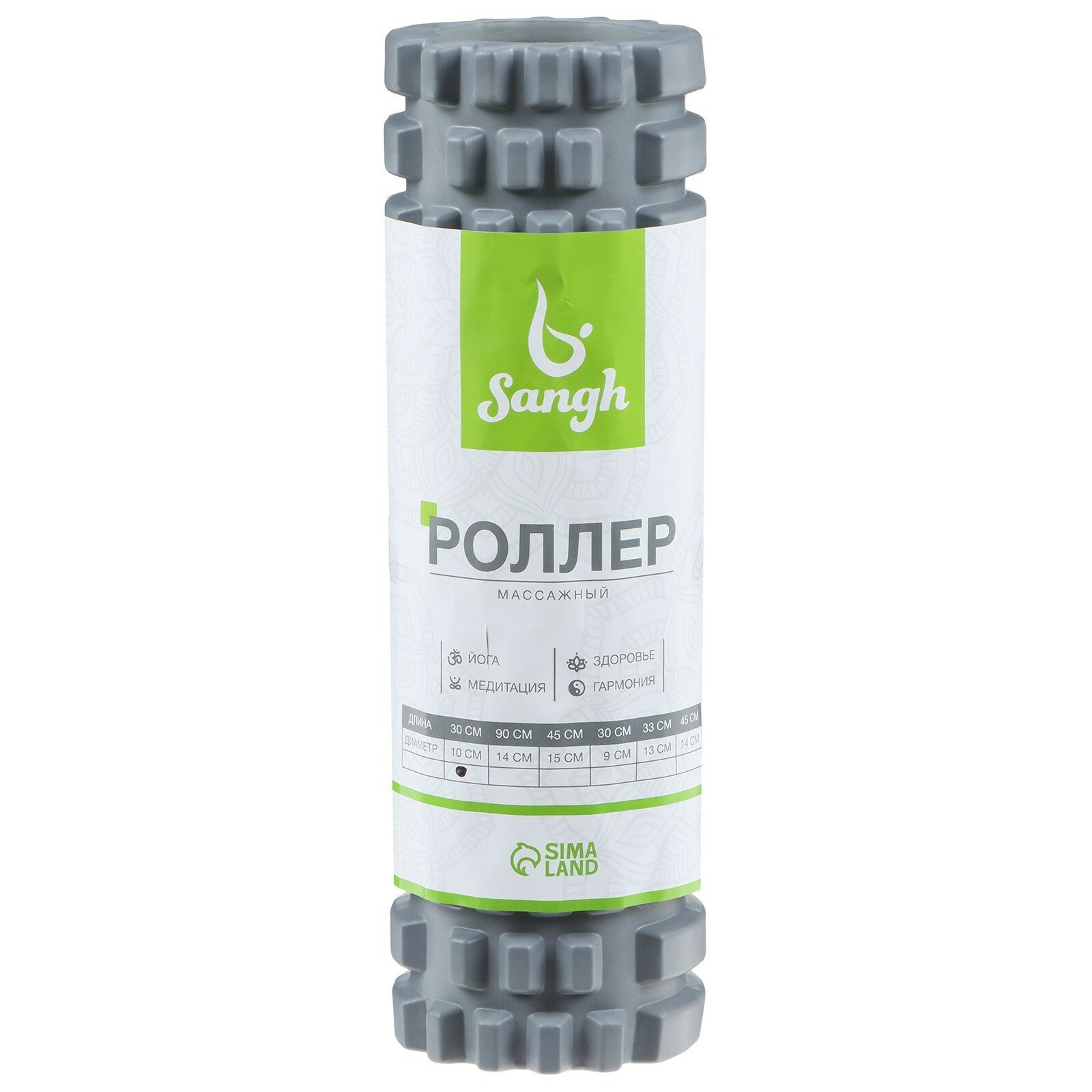 Роллер Sangh, для йоги. размер 30 х 10 см, массажный, цвет серый