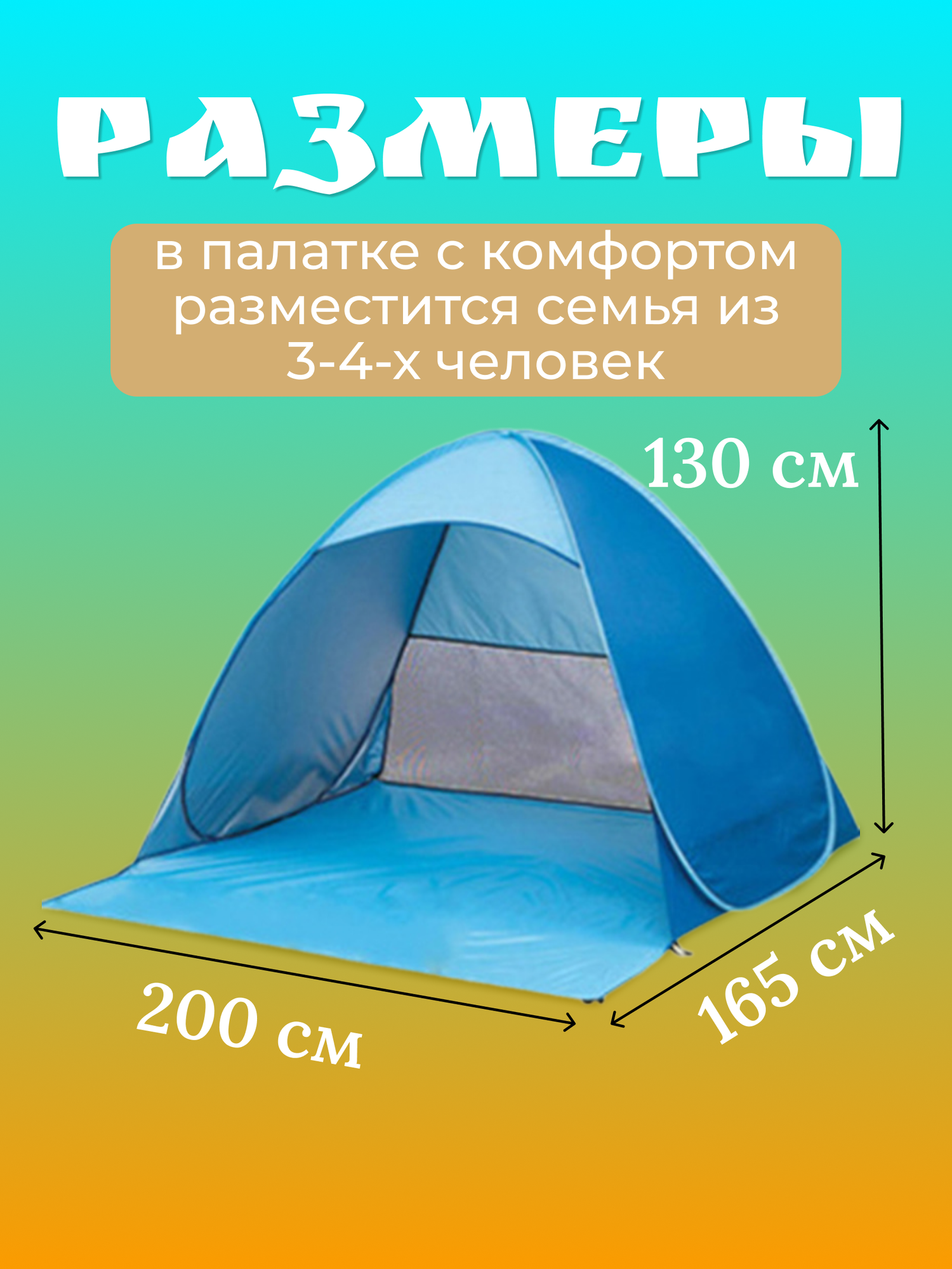 Летняя пляжная палатка 3-х местная автоматическая, с карманами и москитной сеткой интересное: