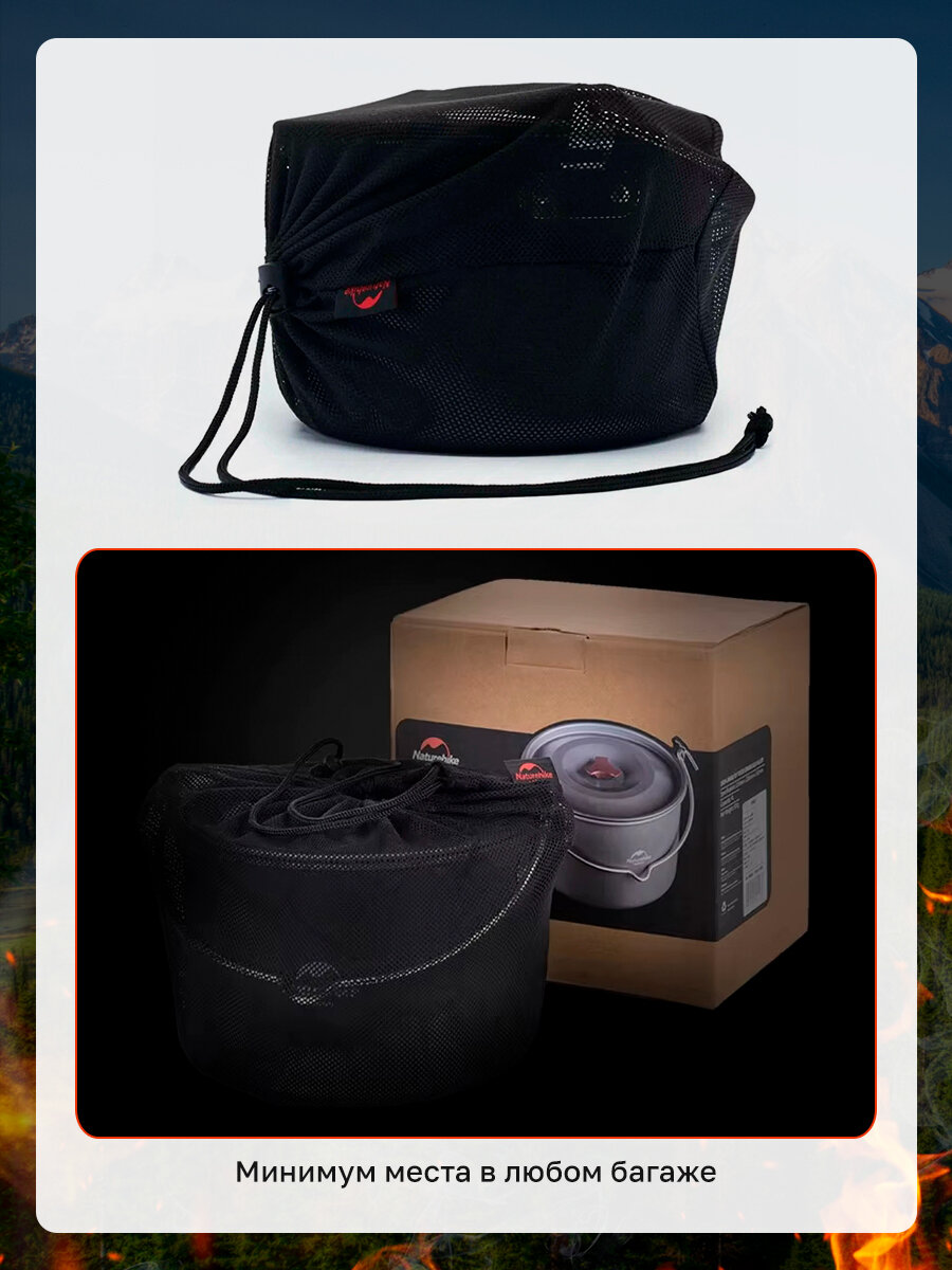 Котелок туристический Naturehike, 4л, анодированный алюминий, пластиковая ручка интересное: