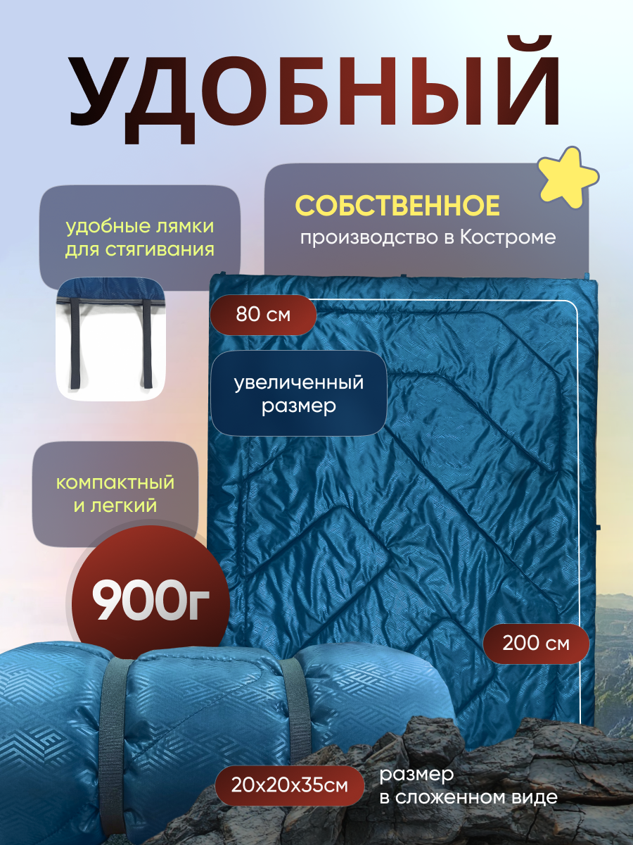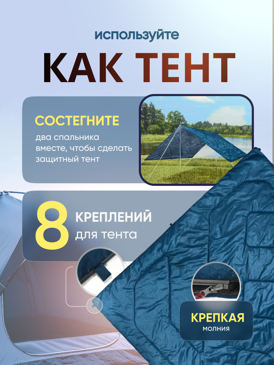 Спальный мешок Castra, туристический, водонепроницаемый, синий, 200х80см интересное: