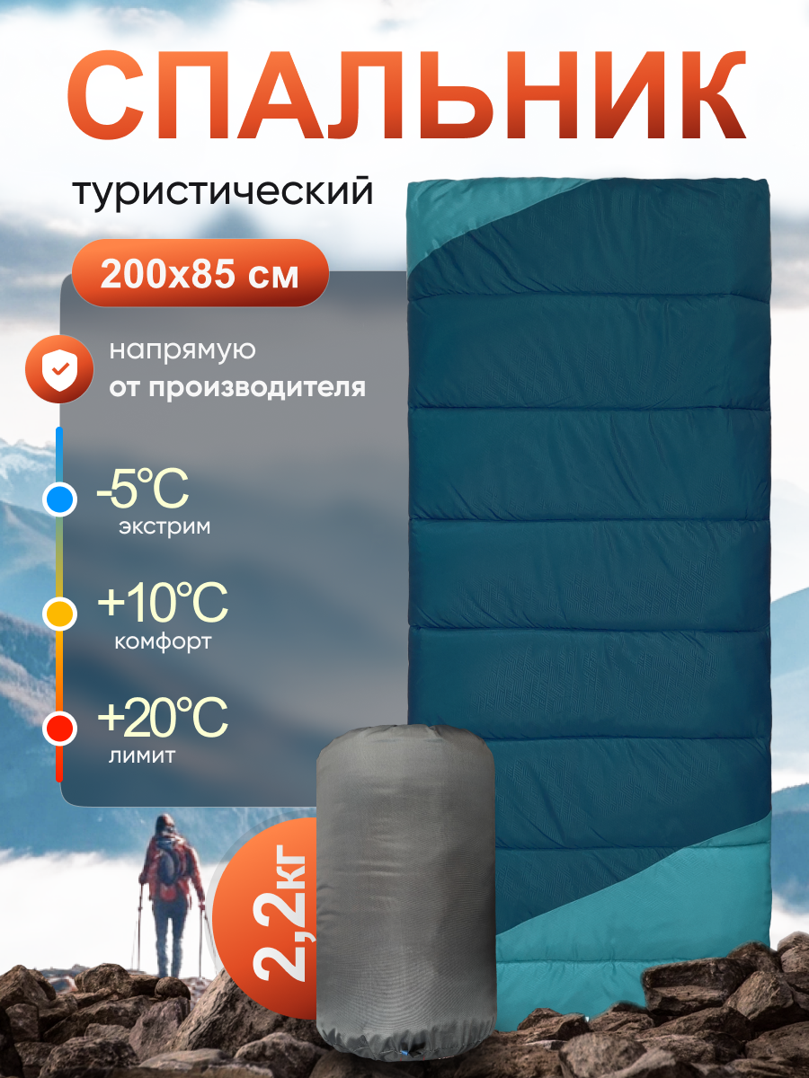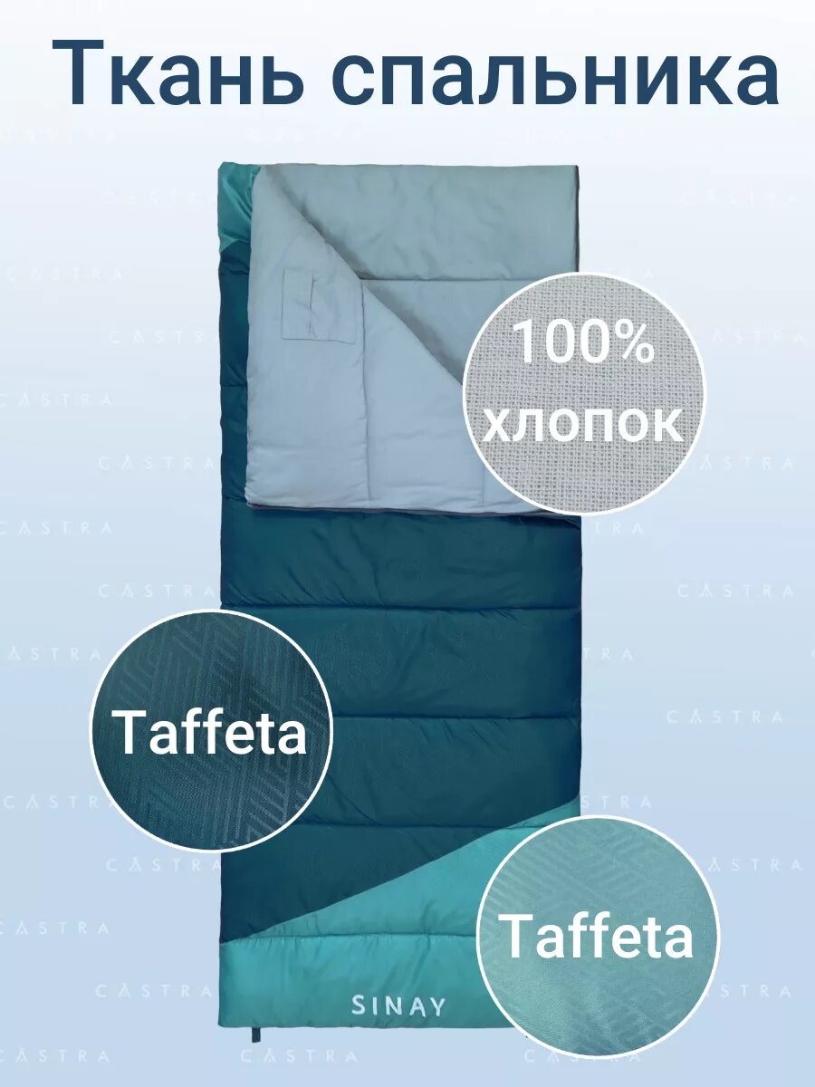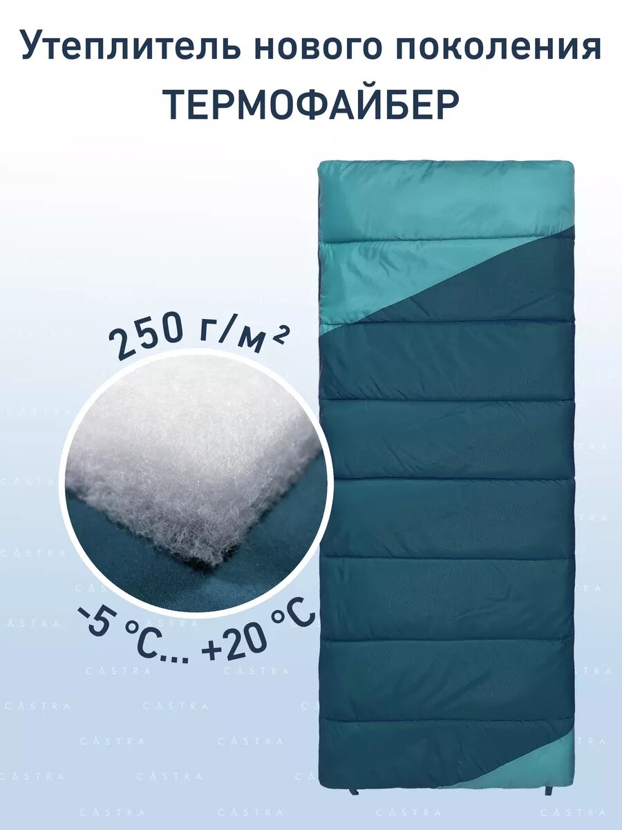 Спальный мешок CASTRA, термофайбер, туристический, зеленый/мятный, 200x85 см интересное: