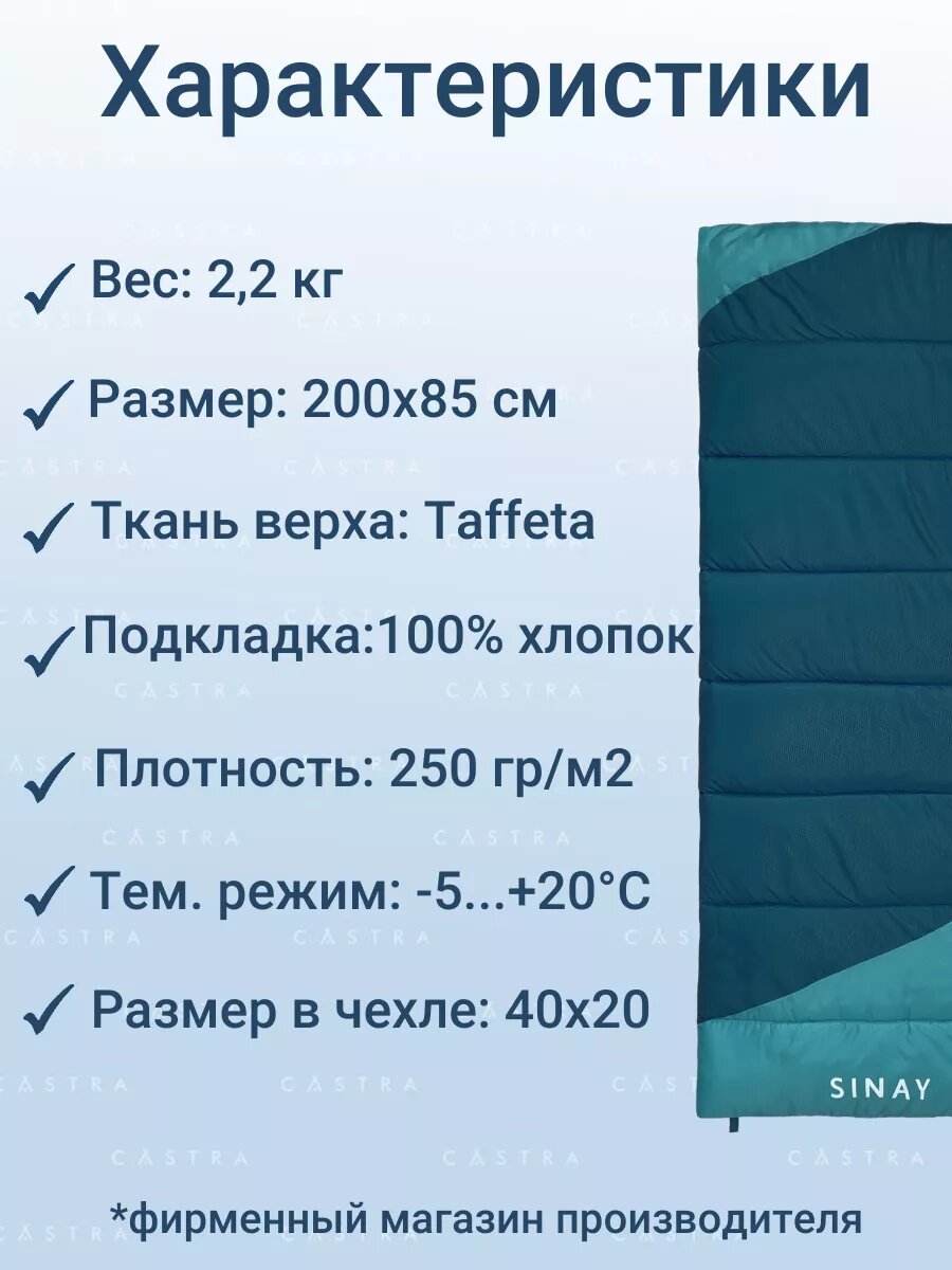 Спальный мешок Castra "Teida", туристический, водоотталкивающий, синий
