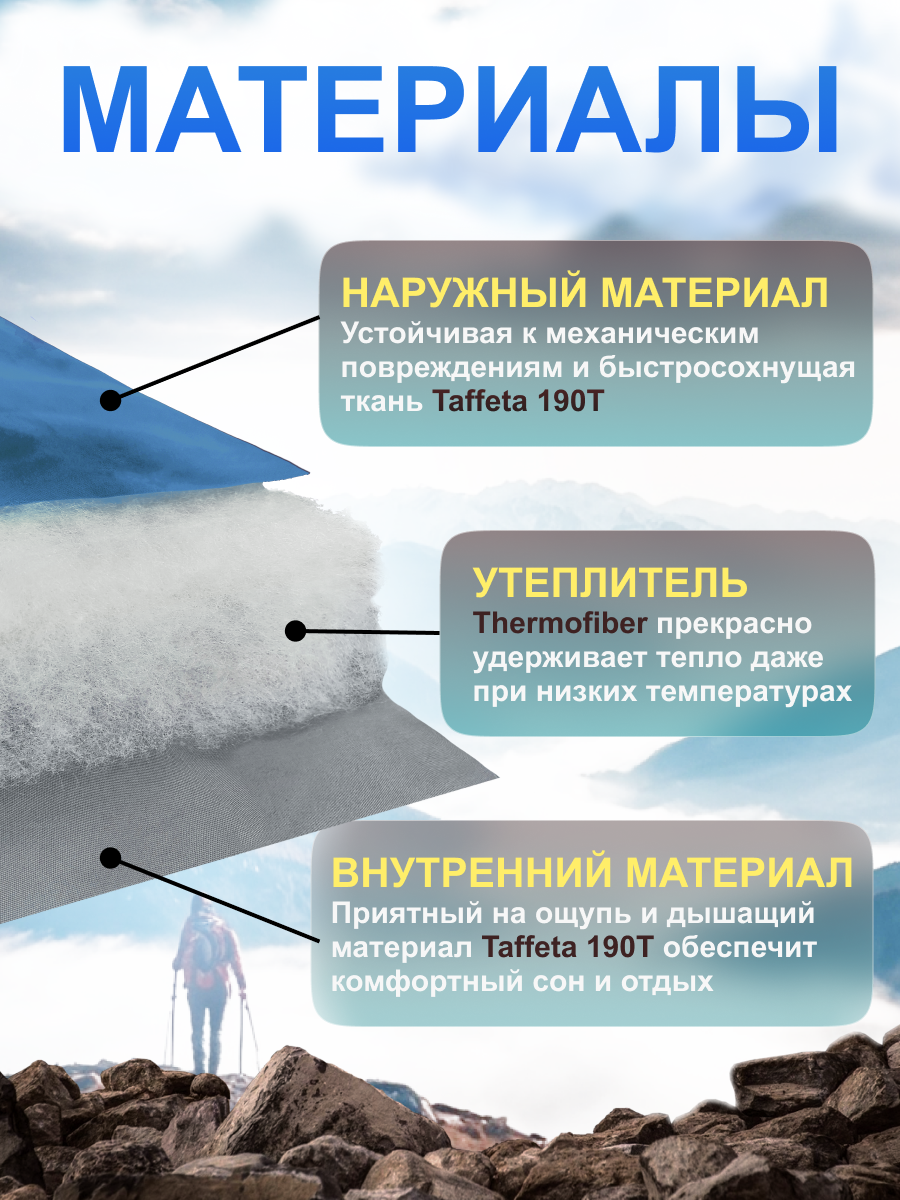 Спальный мешок Castra "Teida", туристический, водоотталкивающий, синий интересное: