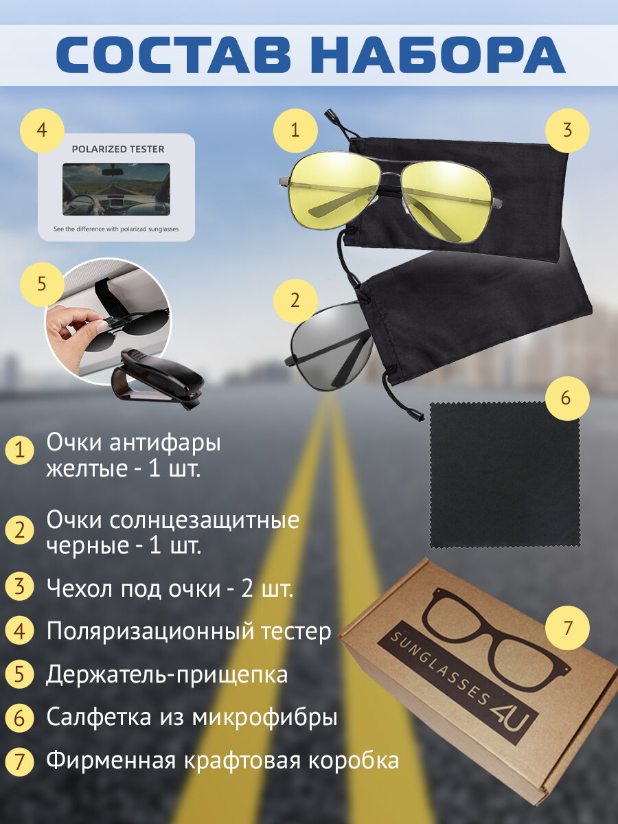 Очки для вождения поляризационные. Набор День - Ночь. Антибликовые