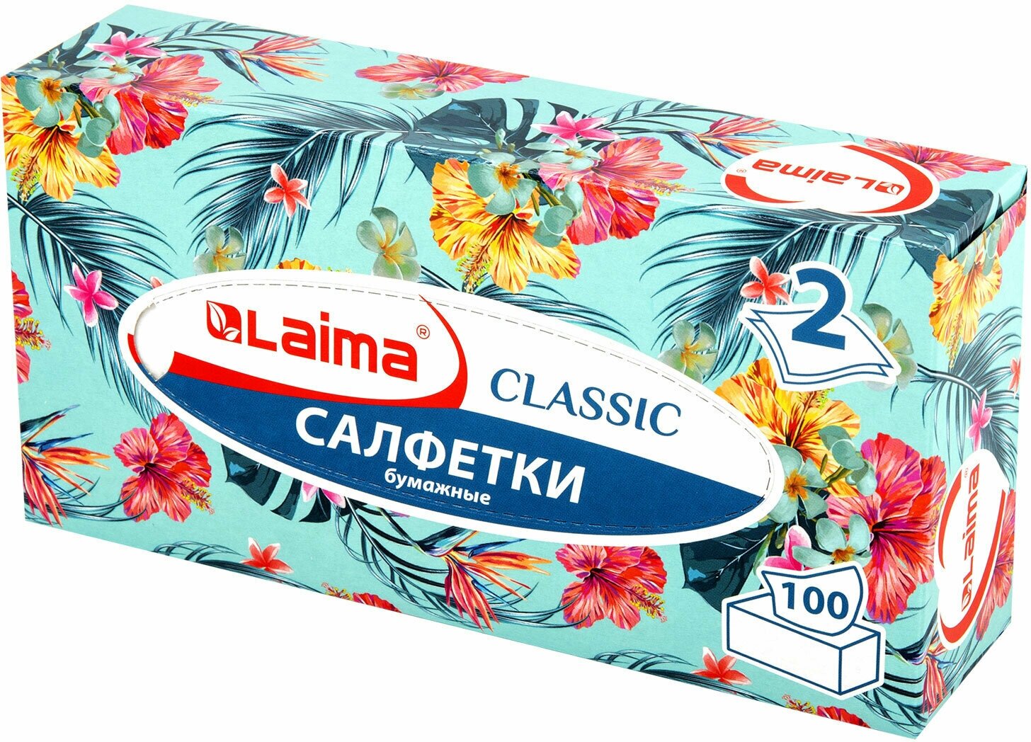 Купить Салфетки / платочки бумажные сухие белые косметические в коробке для лица 100 штук, 2-слойные, Laima Everyday, 20х20 см