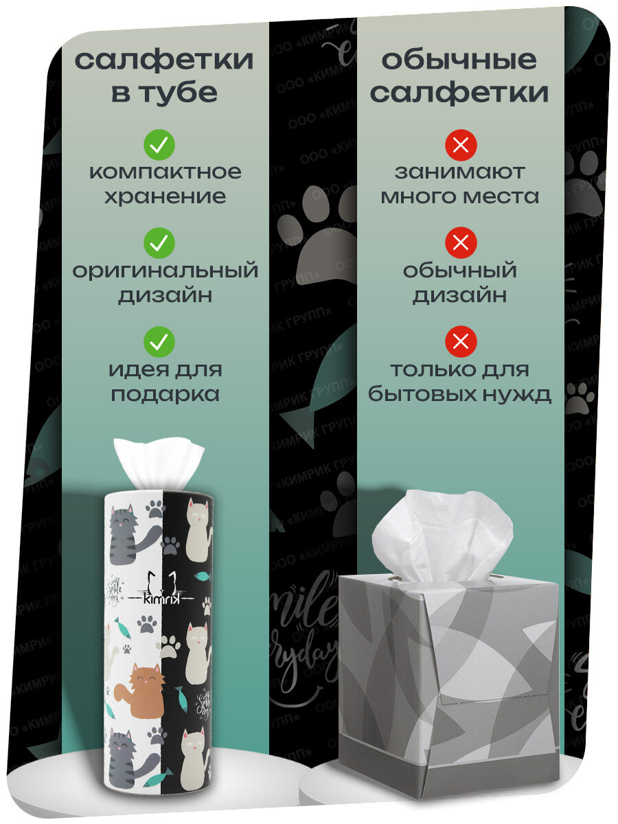 Салфетки бумажные в тубе DOUBLE CAT, 2 слоя, 50 шт/уп