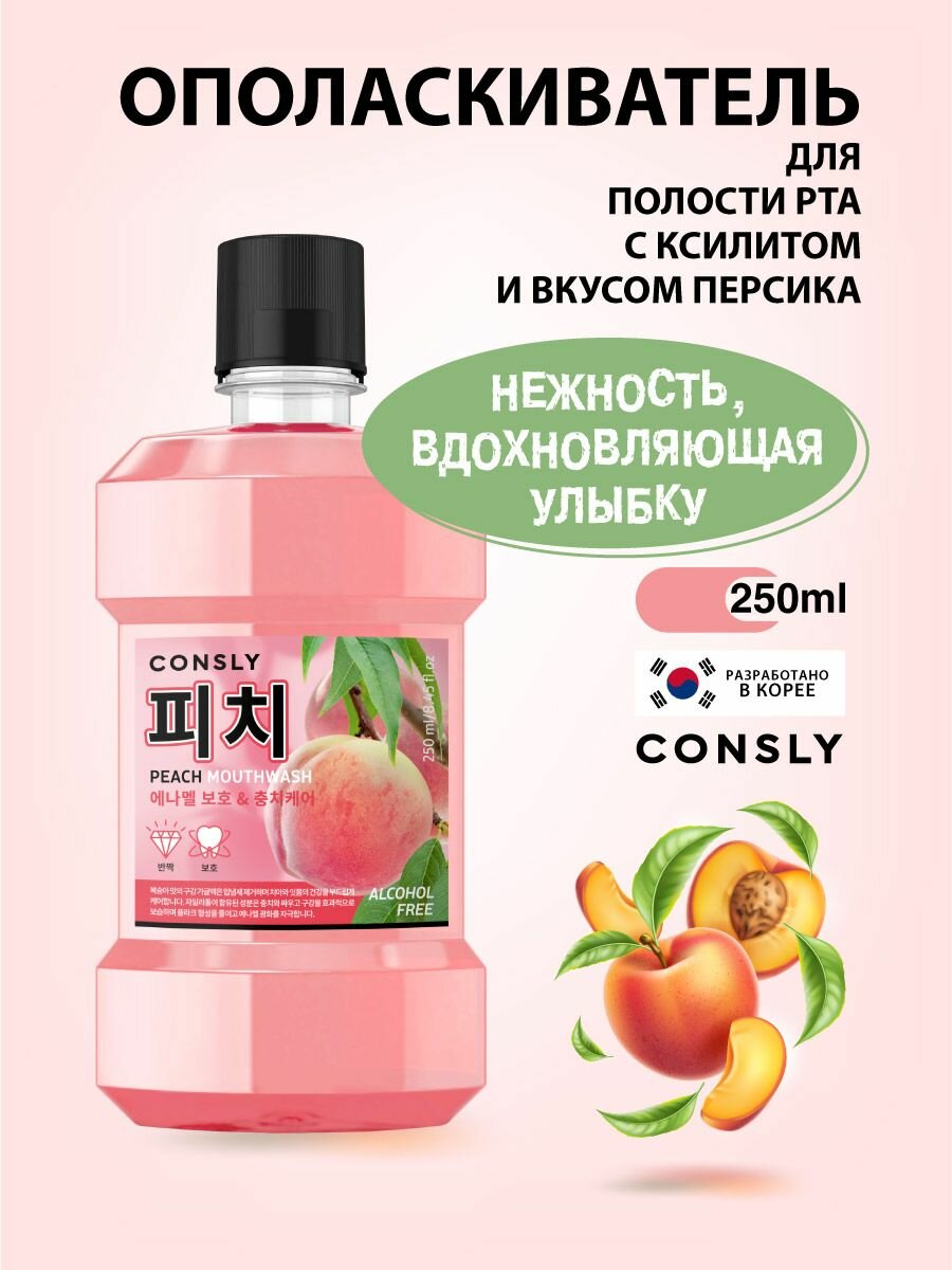Ополаскиватель для полости рта Consly с ксилитом и вкусом персика, 250 мл