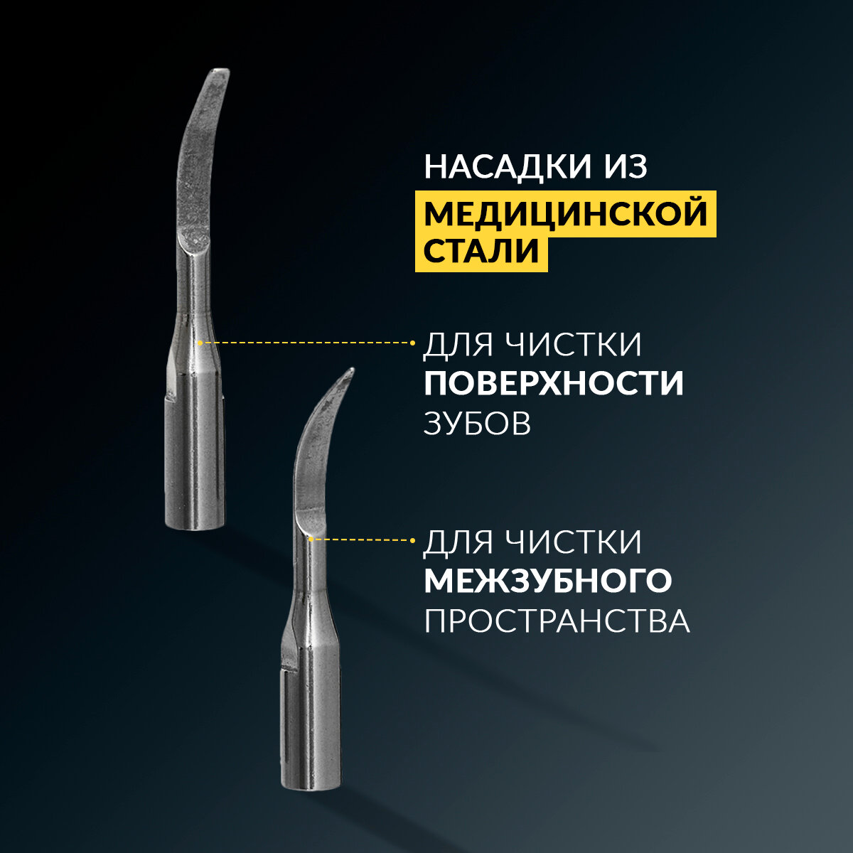 | Состав | Скалер, зеркальце, контейнер, инструкция, дополнительные насадки |