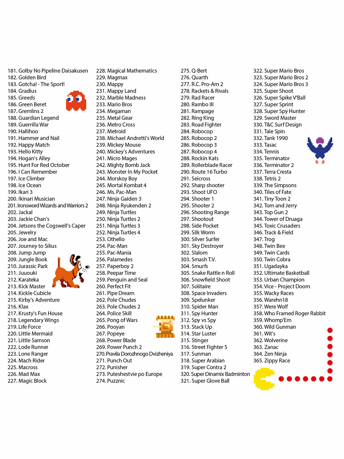 | Поддерживаемые контроллеры | геймпад / джойстик / световой пистолет |