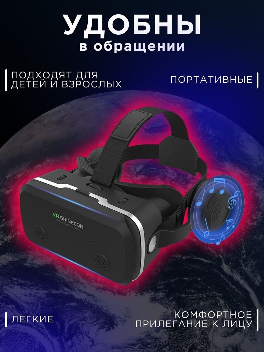 Очки виртуальной реальности для смартфона с наушниками 3D, игровые очки, шлем виртуальной реальности 3Д,